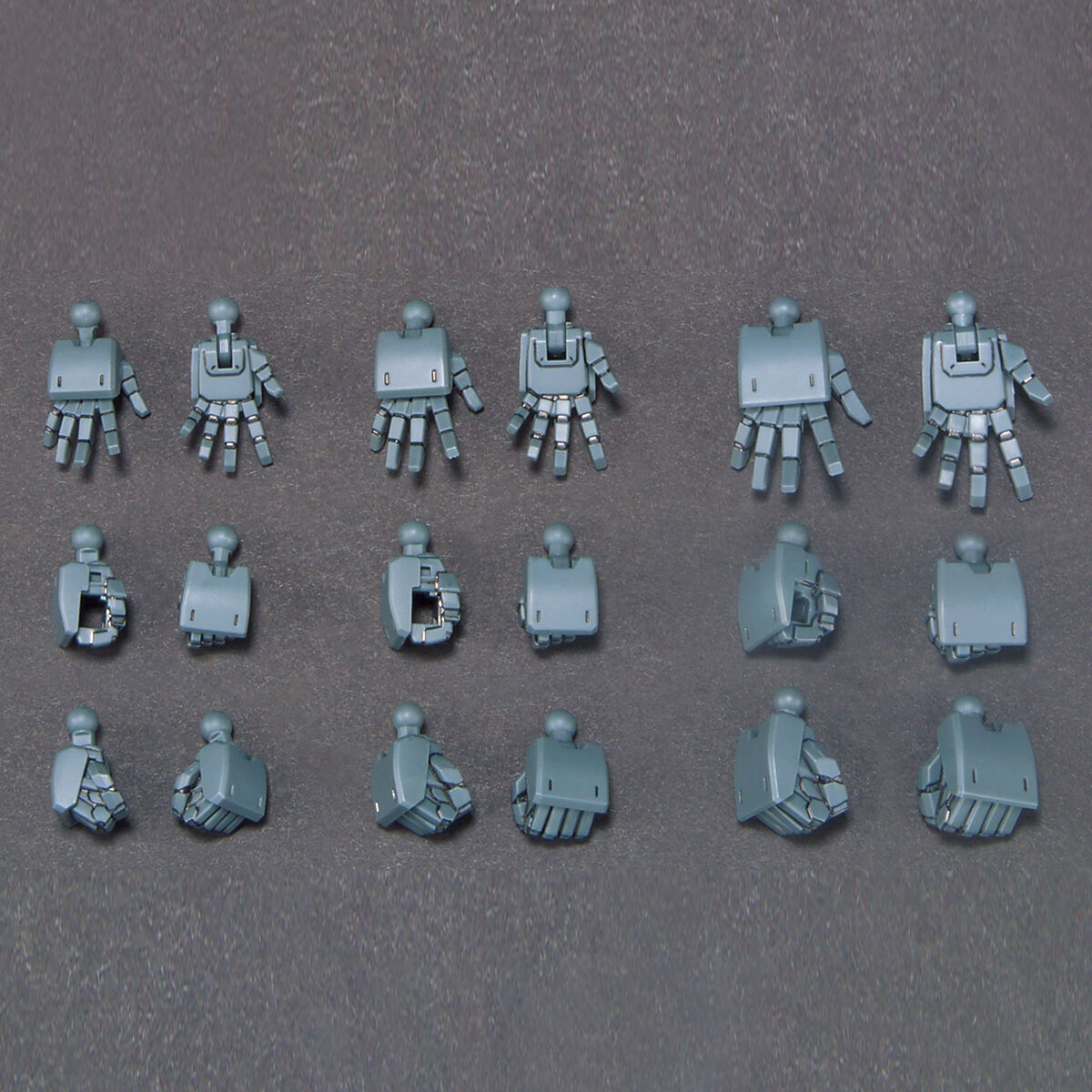 ■拳手、平手、武器持ち手の3種類の左右ハンドパーツ×S・M・Lの3サイズ×2セット。計36個のハンドパーツ入り。